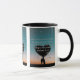 Esta caneca de dois tons apresenta a escritura KJV da citação de bíblia "Ephesianos 3:20" em uma fina letra de impressão com letras brancas contorno preto mais citação de bíblia sobre uma imagem mostrando um indivíduo parado próximo a uma árvore com um topo em forma de coração sob um céu noturno neste tema baseado na bíblia Rei James. A jante e o manípulo são vidrados em cores compatíveis, disponíveis em micro-ondas e máquinas de lavar louça de tamanho 11 onças ou 15 onças, construindo cerâmica segura.