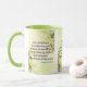 Esta caneca de dois tons apresenta uma fonte sans impressão com letras roxas mostrando o verso da bíblia "Ephesianos 6:4 KJV" sobre uma imagem de fundo mostrando um conjunto de flores multicoloridas em cada lado da escritura sobre um fundo amarelo claro neste tema floral. Este verso está referindo o capítulo 6 do Livro de Ephesianos mostrando o 4º verso neste tema de citação da bíblia do Rei James bíblia. A jante e o manípulo são vidrados em cores compatíveis, disponíveis em micro-ondas e máquinas de lavar louça de tamanho 11 onças ou 15 onças, construindo cerâmica segura.