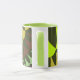 Esta caneca de café fractal colorida tem cores brilhantes e vibrantes como verde e marrom. Estas canecas têm várias cores diferentes para escolher entre a dentro e a alça da caneca. Além disso, você pode escolher entre o estilo e o tamanho dessas canecas. Estas canecas são excelentes para uso na cozinha e no escritório.