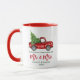 Escova Moderna Roda nosso Primeiro Natal como Sr. e Sra. Watercolor Vintage Red Truck com Mug de Café de Árvore de Natal - Vermelho, Verde e Branco