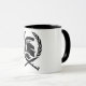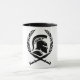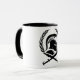 Silhueta de capacete espartano e ombros com duas espadas cruzadas e coroa ao redor do capacete.