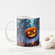 Aproveite o Halloween com esta caneca de abóbora anime. Flutuando em meio às folhas do outono em uma floresta nebulosa, este design assustador é perfeito para café, chá ou presentes para animes e fãs de Halloween.