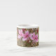Flores cor-de-rosa contra caules burgentos e gramíneas castanhas/verdes.