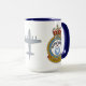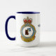 Mata cerâmica de 15 oz de alta qualidade, com as cristas do Esquadrão 4205 e 14 Wing, e uma vista superior do Aurora CP-140. O interior e a pega da caneca são azuis cobalto.