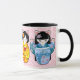 Neko bonito do maneki do kokeshi quatro, ou gatos afortunados japoneses, envoltório em torno desta caneca do kawaii. Cada gato é vestido para representar cada um das quatro estações.