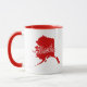 Mostre seu orgulho de casa com essas t-shirts e outros itens que têm um contorno vermelho do estado do Alasca com o nome dentro da forma.
