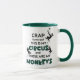 Brilhe seu dia com esta caneca humorística e personalizável que coloca uma reviravolta divertida no provérbio polonês, "Não é meu circo, não meus macacos." Apresentando macacos maliciosos balançando em volta da frase viscosa, "Droga, acontece que este é meu circo e aqueles são meus macacos" em preto e verde, esta caneca captura perfeitamente o espírito de abraçar o encantador caos da vida - um dom brilhante para mães, amigos, família ou colegas que conhecem muito bem a alegria de administrar seu próprio "circo".