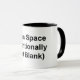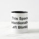 Uma caneca de café com as palavras "Este Espaço Intencionalmente Deixado Vazio" entre parênteses na frente.