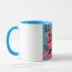 Este design de caneca ousado e dinâmico apresenta as palavras "SUPER MOM" em um estilo retro de quadrinhos, com uma letra rosa vibrante esboçada em branco e uma sombra teal, colocada contra uma explosão de estrelas laranja brilhante. O design da caneca é ainda embelezado com flores rosa estilizadas com folhas de talo e estrelas laranja dispersas, todas sobre um fundo de linhas rasas e rosadas. Esta design de caneca celebra a incrível força e heroísmo das mães de uma forma divertida e atraente, fazer um dom super dia de as mães e uma caneca legal de dia de as mães.