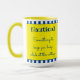 Personalize esta caneca de jogos náuticos estilada para servir a qualquer pessoa, para casa, chalé, trailer ou restaurante. O padrão de fundo é removível e pode ser comutado para qualquer cor que você escolher. A faixa de detalhes central amarela brilhante pode ser alterada para qualquer cor, assim como as faixas azuis do marinho. O texto no lado esquerdo do design pode ser mudado para qualquer mensagem, em qualquer ocasião, com várias cores para escolher entre e o tamanho do copo. Uma maneira divertida e criativa de enviar uma mensagem, ideal para a aposentadoria, ou desejar a alguém uma recuperação rápida, ou desejar férias.