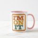 Um design ousado e inspirado na palavra "I'M ON IT" com uma tipografia vibrante no estilo dos 70s, perfeito para adicionar motivação e talento de vintagem à sua rotina diária.
