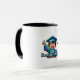 Design de caneca humorística apresentando um animado formando de desenho animado dando um deboche com texto "Eu estou fora daqui." em um fundo de cinza. Perfeito para o novo formando livre!