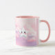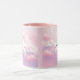Esta é uma caneca Combo Cor-de-Rosa com uma imagem em estrela branca nublada em ambos os lados da caneca. O design de Estrela Cota foi criado com arte gerativa. A arte apresenta nuvens rosa bonito, nuvens prateadas e imagem do céu rosa e lavanda. O interior e a alça da caneca são cor-de-rosa. A caneca mostrada é uma caneca de onze onças.