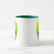 Uma caneca alienígena verde. O motivo é repetido de ambos os lados.
