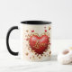 Um design romântico e elegante, inspirado no Namorados, com um coração vermelho ousado no centro com "Amor" escrito maravilhosamente dentro. Cercado por cintilação de corações ouros no fundo, o design brilha com toques ouros, criando uma atmosfera quente e amorosa. "A Imagem Original foi gerada pelo Meta AI. A IA gerou trabalho de arte. Licenciado sob CC BY-SA 4.0."
