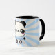 As pandas precisam seu amor demasiado! Uma panda do kawaii que guardara uma bandeira que me diga "ama a panda" sobre um teste padrão do sol de ascensão.