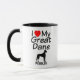 Esta caneca personalizada "I Love My Great Dane" é perfeita para qualquer um que tenha um cão Grande Dane, apenas mude para o seu próprio nome de Grande Dane.