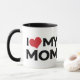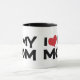 Diga a sua mãe que você a ama esta Dia de as mães com esta caneca que diz, "I Love (Heart) My Mãe" em uma quadra, com letra retrógrada.