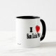 Eu amo o San Luis Potosi! É você do San Luis Potosi, México? Você tem um amigo ou um membro da família que amem o San Luis Potosi, México? Em caso afirmativo, isto "eu amo" a caneca II que mostra que o amor para o San Luis Potosi é exatamente o presente que você está procurando! As características de design a letra "mim" na rotulação preta com um coração vermelho na parte superior e no "San Luis Potosi" na rotulação preta na parte inferior.