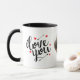 Esta caneca festiva de café apresenta uma design de tipografia moderna "Eu te amo".