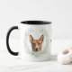"LOVE MY BASENJI DOG" declares this mug for the proud Basenji Hound dog owner. Each side of the mug has a beautiful portrait of a Basenji framed by soft green watercolor eucalyptus leaves. Between the two images is the text, which may be easily customized, or even removed by you, and your monogram or name.