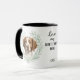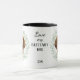 "LOVE MY BRITTANY DOG" declares this mug for the Brittany dog owner. Each side of the mug has a beautiful portrait of a Brittany framed by soft green watercolor eucalyptus leaves. Between the two images is the text, which may be easily customized, or even removed by you, and your monogram or name.