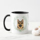"LOVE MY GERMAN SHEPHERD DOG" declares this mug for the German Shepherd Dog owner. Each side of the mug has a watercolor portrait of a beautiful GSD framed by soft green watercolor eucalyptus leaves. Between the two images is the text, which may be easily customized, or even removed by you, and your monogram or name.