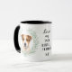 "LOVE MY JACK RUSSELL TERRIER" declares this mug for the Terrier dog owner. Each side of the mug has a portrait of a beautiful little Jack Russell Terrier framed by soft green watercolor eucalyptus leaves. Between the two images is the text, which may be easily customized, or even removed by you, and your monogram or name.