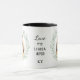 "LOVE MY LHASA APSO" declares this mug for the Lhasa Apso dog owner. Each side of the mug has a portrait of an adorable little Lhasa Apso framed by soft green watercolor eucalyptus leaves. Between the two images is the text, which may be easily customized, or even removed by you, and your monogram or name.