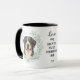 "LOVE MY GREATER SWISS MOUNTAIN DOG" declares this mug for the Swiss Mountain dog owner. Each side of the mug has a portrait of a beautiful Greater Swiss Mountain dog framed by soft green watercolor eucalyptus leaves. Between the two images is the text, which may be easily customized, or even removed by you, and your monogram or name.