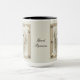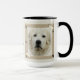 Um belo retrato dos Pirenéus Excelentes. Este cão amável e confiável tem uma expressão irresistível em seu rosto. A foto aparece em ambos os lados da caneca com o nome, Pirenéus Excelente no centro e uma borda de estampas e ossos de cachorro. As fotos e o texto podem ser personalizados para adicionar seu animal de estimação favorito.