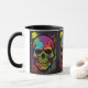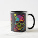 Um trabalho de arte de crânio psíquico vibrante e elegante que se rompe com cores elétricas e energia dinâmica. Esta imagem combina tons de néon de verde, rosa, azul e laranja com um fundo escuro para criar um contraste impressionante. Os exagerados traços do crânio e os efeitos de pintura espalhada acrescentam uma qualidade caótica e surreal, fazer esse pedaço perfeito para fãs de arte alternativo e vanguarda. Este design atraente é seguramente destacável, com suas cores ousadas e detalhes intrincados evocando uma sensação de mistério e entusiasmo.