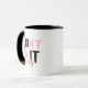 Esta caneca de na moda apresenta a citação ousada "Não Sair, Faça Você Mesmo", projetada com um efeito marcante de dois tons. As cores contrastantes aumentam o impacto da mensagem, inspirando automotivação e resiliência. Perfeito para os entusiastas do movimento go, empreendedores, e do DIY, esta caneca combina moda com uma declaração poderosa, fazer-a como uma peça sobressalente.