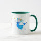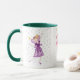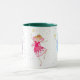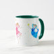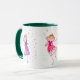 Uma bonito caneca branca de café com lábio e alça verdes, decorada com fadas de pinturas aquáticas por Judy Adamson. Cartões de saudação e t-shirts também disponíveis.