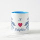 Uma família de golfinhos bonita para uma natação. Azul macio em tons azuis