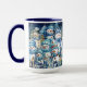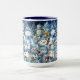 Esta caneca festiva apresenta um padrão alegre de bonecos de neve e presentes de natal, arranjados brincalhosamente num fundo azul sereno, perfeito para beber suas bebidas favoritas.
