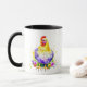 Bonito aquarela, ai, representando uma galinha bonita e colorida. A parte de trás da caneca tem a citação, "Faneca Lover, Alimentada por Café" na parte de trás. Bonito presente para alguém que ama as galinhas do quintal.