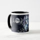 A bruxa bonita com uma bola de cristal mistura-se na noite.