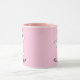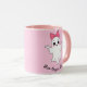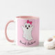 Uma caneca no estilo "Kawaii", uma design fantasma com arco de cabelo cor-de-rosa