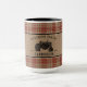 Uma bela e rústica caneca de café, com duas tonalidades, com seu nome familiar e "fazenda", rancho, propriedade ou outro texto desejado e uma data estabelecida. Este design exclusivo e personalizado apresenta trabalho de arte de desenho manual de um trator de fazenda vintage em um impressão de burlap e rodeado de uma bela xadrez country red e khaki. Para ver mais designs como esta, sinta-se à vontade para visitar a minha loja aqui em "Zazzle.com/Rustic_Charm". Obrigados.