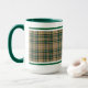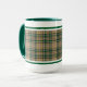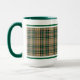 Uma caneca de café com o clã tartan Farrell, um padrão clássico de xadrez em tom e verde, com sotaques amarelo, preto e branco brilhantes. Cinco estilos disponíveis em dois tamanhos.