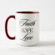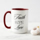 Um design de tipografia na moda com "Fé, Amor e Esperança". Simples mas poderosa, esta peça de arte adiciona uma dica de elegância e motivação a qualquer espaço. Ideal para itens imprimíveis como posters, canecas e t-shirts. Adotar os valores fundamentais da vida de uma forma moderna e graciosa.