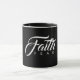 Design de texto visual de reprodução de palavras com a primeira linha em uma fonte forte e bonita impressa em negrito acima da segunda linha de letras pequenas em grande escala. Mantenha o ditado inspirador "Fé sobre o Medo" para um presente de encorajamento, ou use o modelo de texto para criar uma nova citação inspiradora. Edite para alterar o texto branco e o fundo preto para qualquer cor que desejar. ♡ Idyllfire