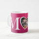 Adicione sua foto a esta caneca feita sob encomenda da foto do dia das mães! O fundo cor-de-rosa vibrante com coração claro dá forma no fundo. "MAMÃ tipográfica grande" em todos os bonés, onde a letra center é uma forma do coração.