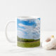 Esta caneca customizável do poema da ponte do arco-íris da lembrança honra seu golden retriever MASCULINO. O fundo é um arco-íris e um cão nas nuvens. Você personaliza o lado do vidro com nome e datas do seu menino. A caneca da simpatia é um tributo perfeito a seu anjo dourado. É parte da coleção justa dos ouros do amor.