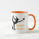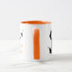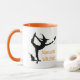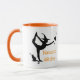 A bruxa do Halloween Namaste Witches Black Orange Café caneca Engraçado Engraçada canta a frase "Namaste Witches" em laranja num simples, moderno design preto e branco de uma boa bruxa fazendo yoga (Lord of the Dance pose) enquanto ela envia amor e luz com um coração e estrelas. Seu familiar, um gato preto se senta perto da perna. Esta caneca é uma maneira excelente de compartilhar boas vibrações!