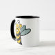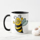 Uma linda abelha de desenho animado com um sorriso feliz acenando olá. Esta é uma ilustração original de mim (não de clip art). O motivo é repetido em ambos os lados da caneca.