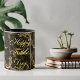 A moderna caligrafia dourada numa caneca preta com espirais é a certa para presente de Dia de os pais. A ilustração apresenta espirais de ouro em uma configuração preta. O TEXT no centro tem uma borda floral e é personalizável.