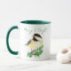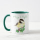 Feliz de passarinho de frango e citação de Natal brilhante. Bela e amigável passarinho de aquarela sentado em um galho sagrado.