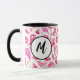 Entre no espírito da estação assustadora com uma caneca moderna e fofa do Halloween cheia de fantasmas cor-de-rosa, morcegos, abóboras, doces e chapéus de bruxa completos com suas iniciais de monograma para realmente torná-la sua. Simplesmente personalize com as suas iniciais para realmente fazer desta caneca uma caneca especial.